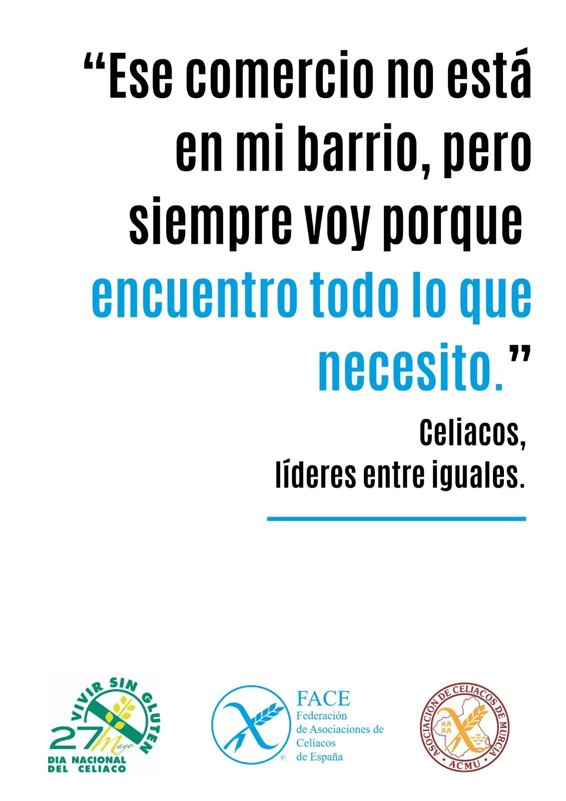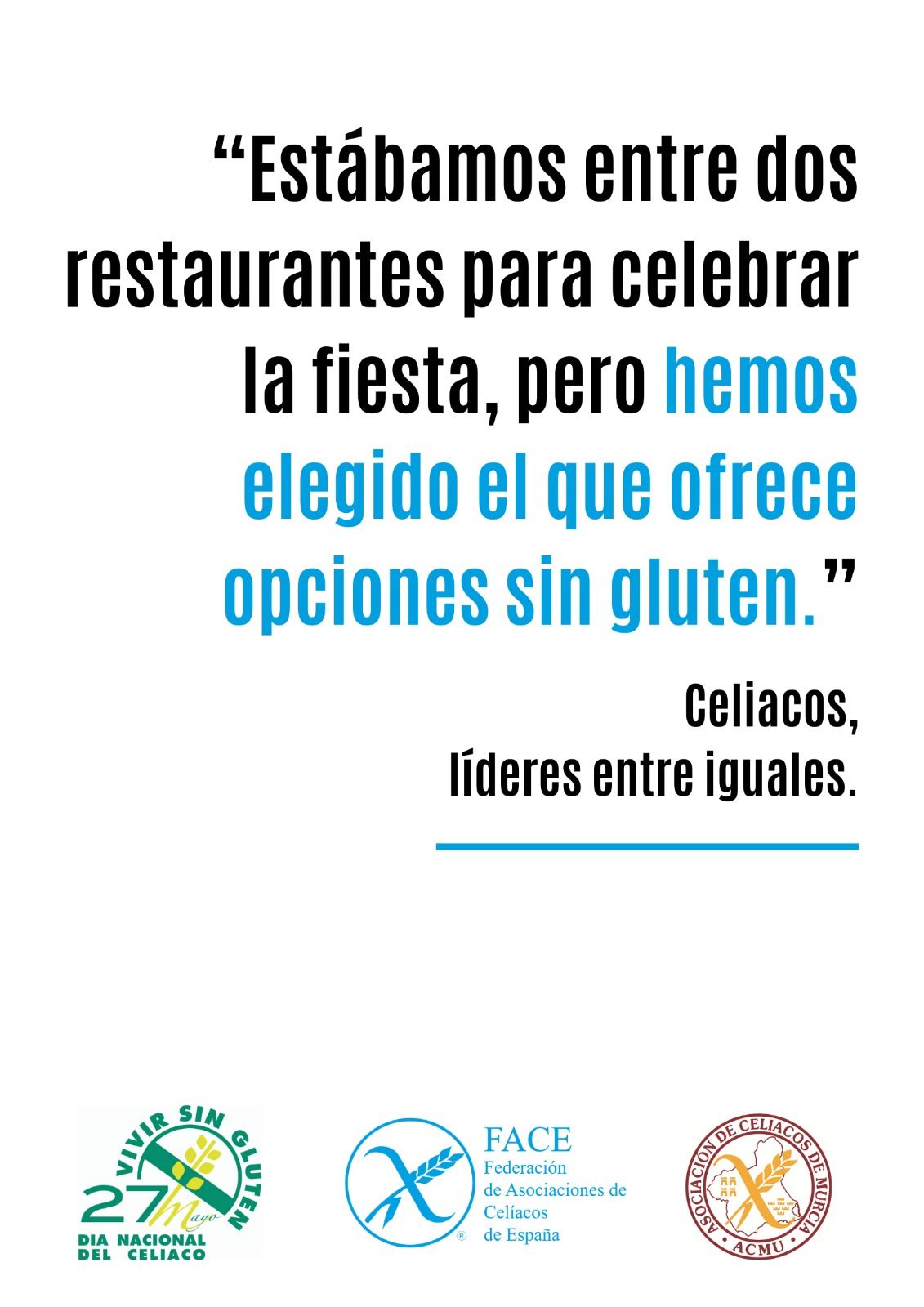 Este año bajo el lema “Celiacos, líderes entre iguales” buscamos visibilizar el papel de las personas celiacas dentro de sus grupos sociales con mensajes como “Nos encanta esa pizzería y como además Adrián puede comer allí, vamos todos los viernes”.