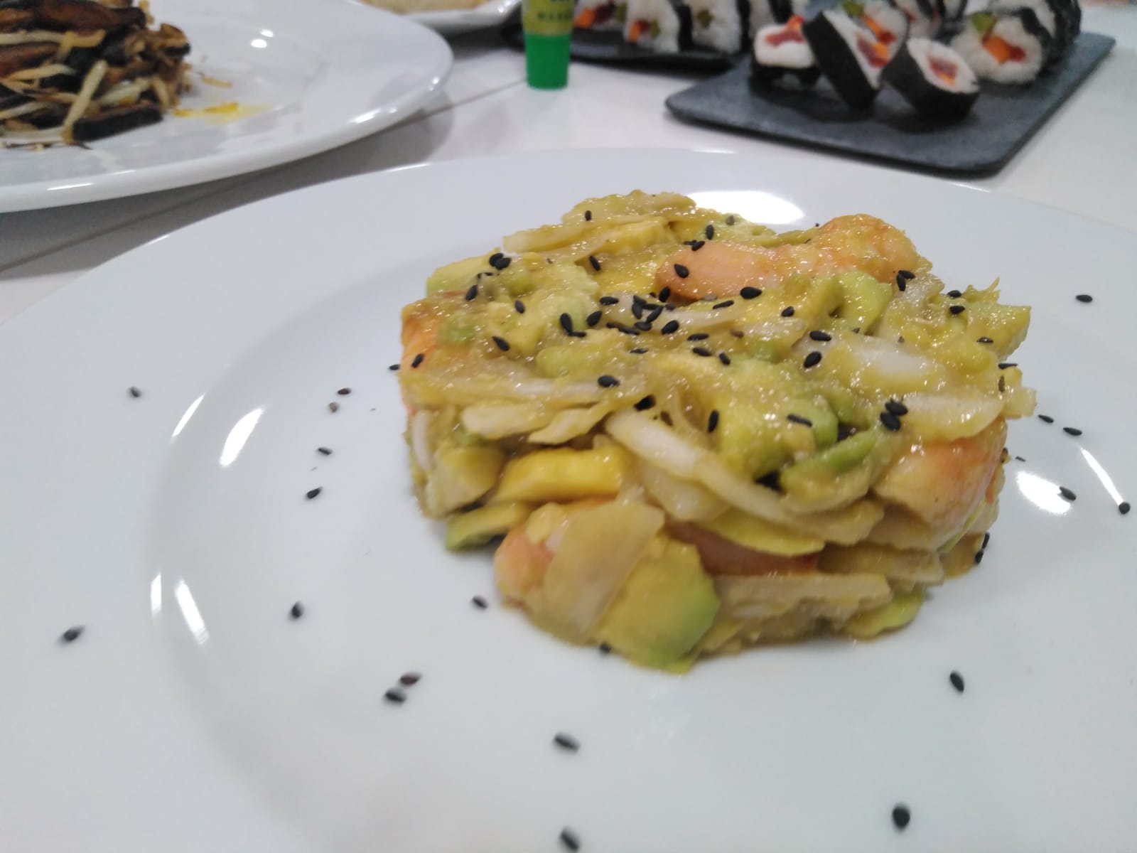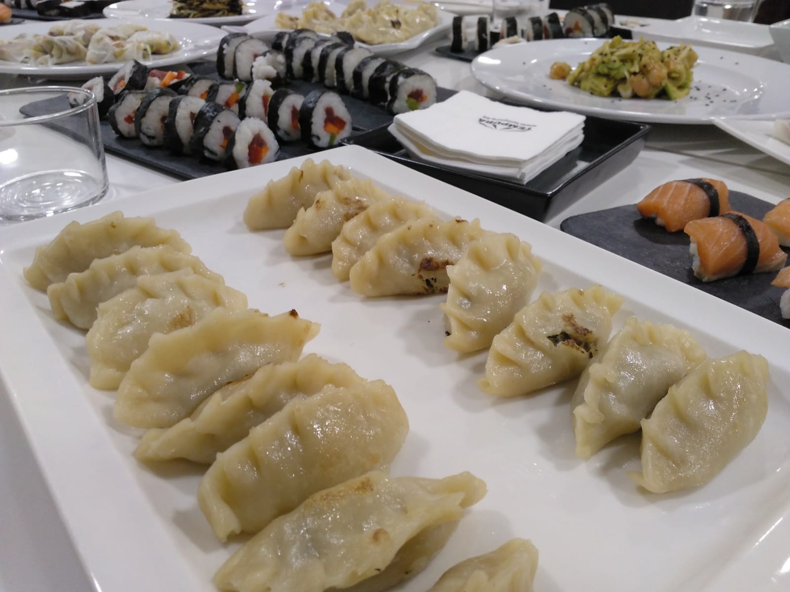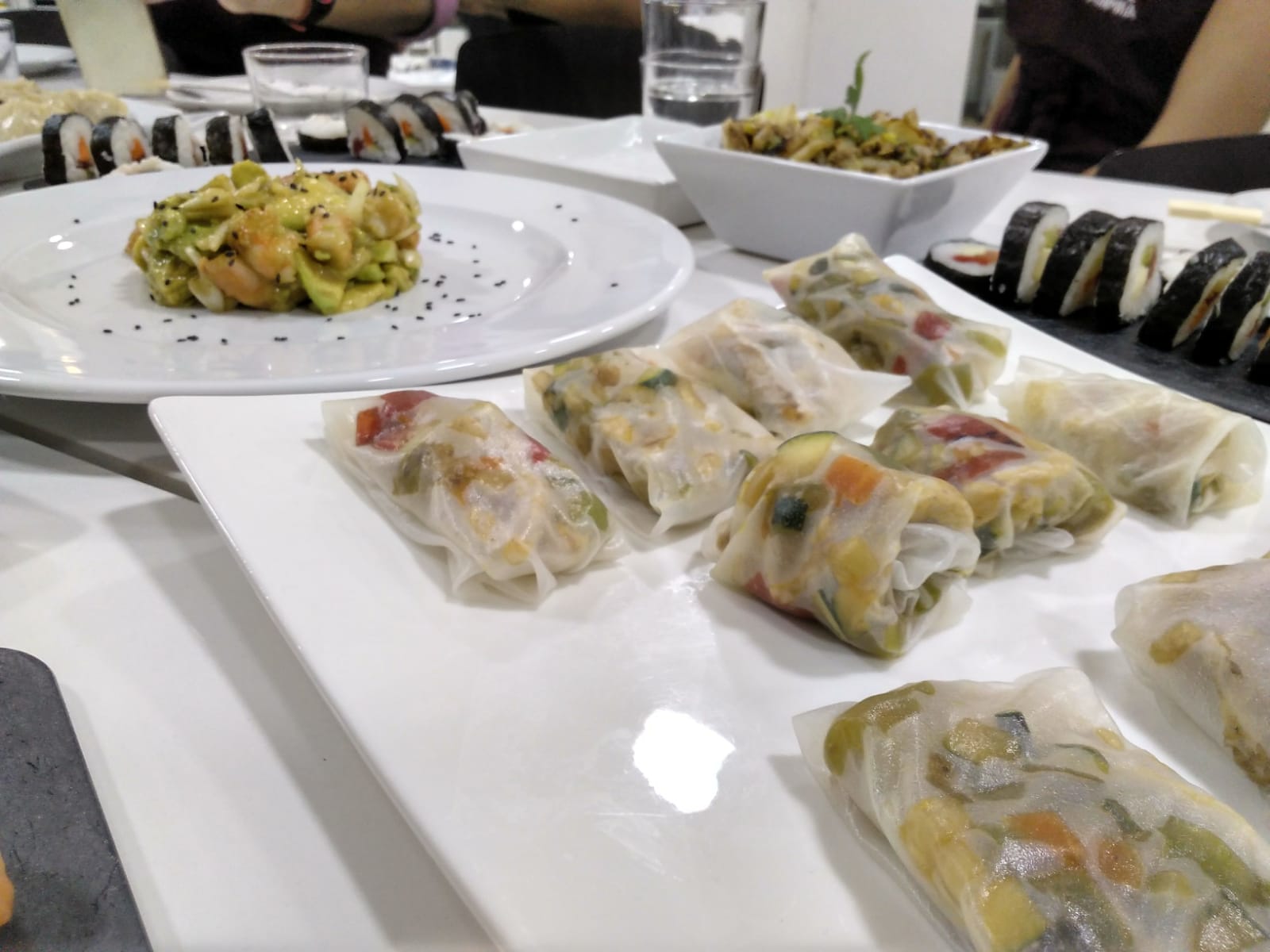 aguacate y gambas, rollitos de papel de arroz con cerdo y verduritas, gyozas… y estaba todo buenísimo 😋