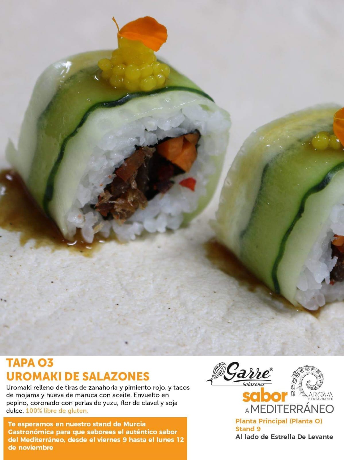 17/11/2018Este año hemos estado muy presentes en Murcia Gastronómica 2018 con tapas sin gluten de la mano de RESTAURANTE ARQVA (100% sin gluten) y con la celebración de un TALLER DE COCINA SIN GLUTEN junto con Estrella Carrillo de RESTAURANTE SANTA ANA.