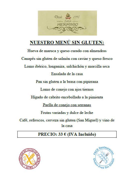RESTAURANTE CASA HERMINIO se une a nuestra lista de restaurantes aptos para celiacos!